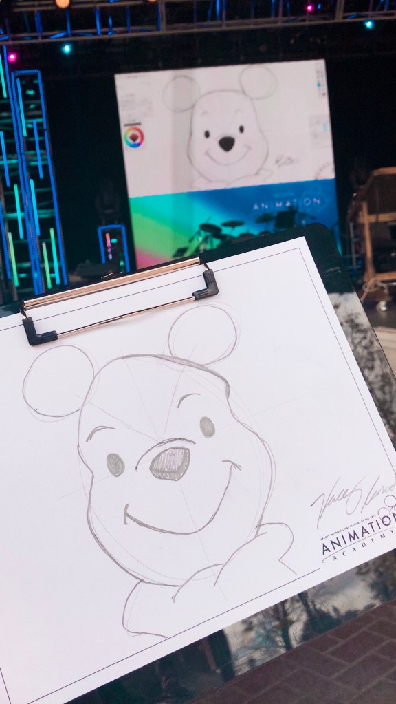 Experience the magic of Disney animation at this fun and informative drawing class taught by actual Disney artists. Hosted at the American Gardens Theater at both 12:30 & 1:30, this experience is a mini-workshop that is led by an animation artist that teaches you how to draw a Disney character. In the class I went to we learned how to draw Winnie the Pooh. โ โ โ โ โ โ โ